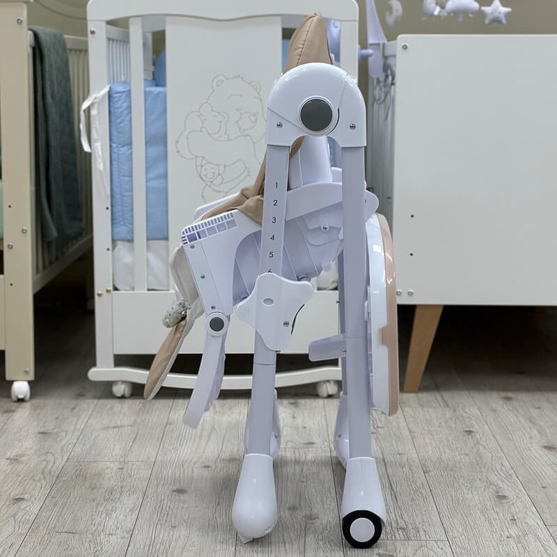Hranilica Tummie se sklapa ravno-možete dodatno odvojiti tacnu i pričvrstiti je za zadnje noge. Ovo je savršeno rešenje posebno za male stanove. Osim toga, Tummie ima 2 praktična točkića koja olakšavaju transport stolice.